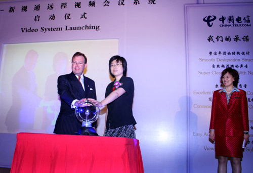 在新聞發(fā)布會儀式上,來自中國電信和北京國賓酒店信息中心的技術(shù)人員為來賓們現(xiàn)場演示了這套視頻會議系統(tǒng),國賓酒店安裝的這套全球先進的“新視通”視頻會議系統(tǒng),是一款高檔分體式的會議室型終端服務體系,它可以提供非常靈活可靠及強大的功能,完全可以滿足各種會議室、教室或中小規(guī)模的會議應用環(huán)境。采用專門集成的音響系統(tǒng),利用“新視通”的專利技術(shù),提升了音頻質(zhì)量。通過雙揚聲器和雙麥克風,可以清晰的聽到每個發(fā)言人的聲音,輕松辨別多個發(fā)言人的同時談話,感受純正、豐滿的音頻質(zhì)量。與其他運營商推出的視訊業(yè)務相比,