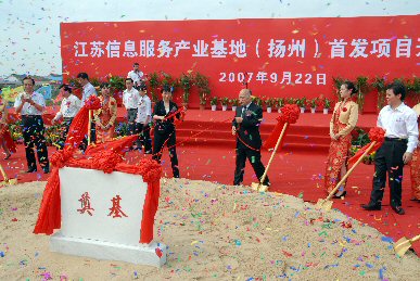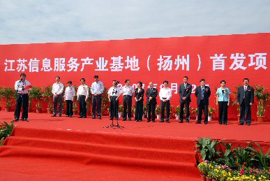 日前,江蘇信息服務(wù)產(chǎn)業(yè)基地(揚州)首發(fā)項目開工典禮在廣陵新城隆重舉行,這標志著產(chǎn)業(yè)基地建設(shè)邁入了實質(zhì)性階段。揚州市人民政府市長王燕文和天津泰達公司董事長劉惠文為奠基石揭幕,市委常委、常務(wù)副市長王榮平致賀詞,江蘇省信息產(chǎn)業(yè)廳副廳長龔懷進出席了開工典禮。CTI論壇編輯