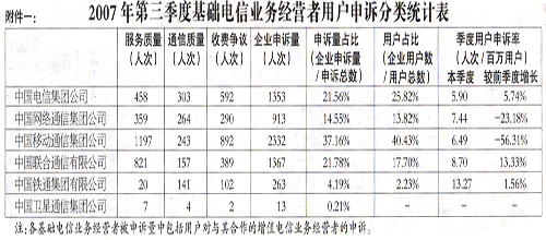 為加強(qiáng)社會(huì)監(jiān)督,推進(jìn)電信服務(wù)質(zhì)量持續(xù)改善,根據(jù)《中華人民共和國(guó)電信條例》相關(guān)規(guī)定,現(xiàn)將2007年第三季度電信服務(wù)質(zhì)量有關(guān)情況公布如下。 服務(wù)質(zhì)量方面。全國(guó)電信服務(wù)水平保持穩(wěn)步提升,全國(guó)電信業(yè)務(wù)綜合資費(fèi)水平持續(xù)降低;A(chǔ)電信服務(wù)方面,各電信業(yè)務(wù)經(jīng)營(yíng)者按照“誠(chéng)信服務(wù)放心消費(fèi)”行動(dòng)第三階段要求,鞏固前期工作成果,積極探索誠(chéng)信經(jīng)營(yíng)、優(yōu)質(zhì)服務(wù)的長(zhǎng)效機(jī)制。市話詳單查詢工作繼續(xù)推進(jìn),全國(guó)新增山西、遼寧、浙江、安徽、江西、福建、山東、海南等8個(gè)省份全面實(shí)現(xiàn)各類通信清單查詢;通過對(duì)原有服務(wù)流程和資費(fèi)套餐進(jìn)行深入清理與整合,使得服務(wù)更加人性化和便捷化,方便用戶選擇和使用業(yè)務(wù)。增值電信服務(wù)方面,通過對(duì)前期社會(huì)反映熱點(diǎn)問題進(jìn)行重點(diǎn)整治,增值電信業(yè)務(wù)市場(chǎng)正進(jìn)一步規(guī)范,良好的信息服務(wù)環(huán)境正逐步形成。信息服務(wù)業(yè)務(wù)市場(chǎng)誘騙消費(fèi)、不明扣費(fèi)、不明碼標(biāo)價(jià)、虛假宣傳等問題得以有效遏制。