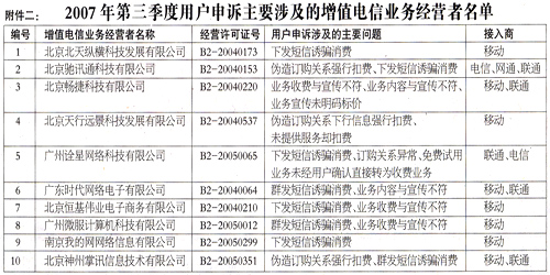 增值電信業(yè)務(wù)經(jīng)營(yíng)許可證年檢“不合格”企業(yè)名單公布 2007-10-26 |