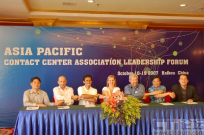 2007年10月18-19日,亞太呼叫中心領(lǐng)導(dǎo)人會(huì)議在中國?谂e行。中國大陸CNCCA、香港HKCCA、臺(tái)灣TCCDA以及澳大利亞ATA和CCMA、新加坡CCAS、印度尼西亞ICCA等共7個(gè)亞太地區(qū)呼叫中心協(xié)會(huì)的領(lǐng)導(dǎo)人參與了會(huì)議研討。各協(xié)會(huì)一致決定發(fā)起成立“亞太客服與呼叫中心聯(lián)盟”(Asia Pacific Contact Center Association Leaders),就涉及亞太區(qū)域的呼叫中心協(xié)會(huì)間合作和溝通事務(wù)發(fā)揮領(lǐng)導(dǎo)作用。亞太呼叫中心協(xié)會(huì)領(lǐng)導(dǎo)人簽署合作備忘錄