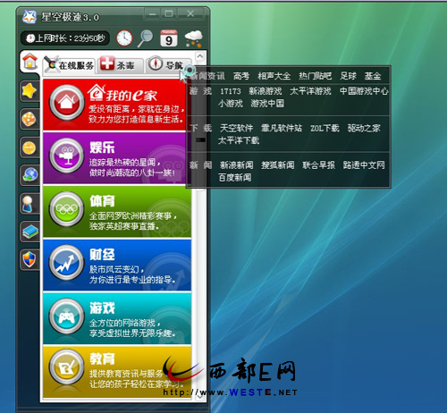 中國電信終于也出IM軟件了,中移動(dòng)除了飛信、聯(lián)通出了超信、網(wǎng)通出了靈信,現(xiàn)在電信這個(gè)叫什么?還是星空極速?最新版本看來似乎叫做“星空極速3.0”,據(jù)說最近一直在廣東電信推出的寬樂通信就是電信IM的雛形,開始在深圳東莞等地上線。據(jù)說新版的星空極速3.0就已經(jīng)做到了IM的功能,而且還支持VoIP!西部E網(wǎng)