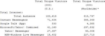 comScore最近放出的一份IM統(tǒng)計結果如下(單位為千):