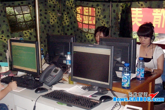 5月15日,在川航信息服務(wù)處、后勤支援中心及商旅公司、成都營(yíng)業(yè)部等部門(mén)大力支持下,在辦公樓下的空地上搭建起了呼叫中心應(yīng)急工作帳篷。每天呼叫中心兵分兩路,絕大多數(shù)坐席在辦公樓工作,同時(shí)指派4位業(yè)務(wù)骨干坐席駐守在帳篷里。在余震不斷的情況下,保證了24小時(shí)電話暢通,滿足了旅客在余震中急于出行的需求。