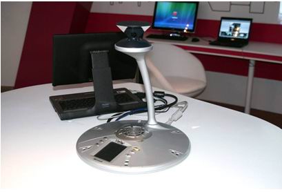 在耐心聽完介紹后,禁不住誘惑,我便親自做了現(xiàn)場體驗,原來這套系統(tǒng)所使用的360o攝像頭不同于一般的攝像頭,它集4個攝像頭以及USB設備為一體,不改變位置就能輕松實現(xiàn)360度全景覆蓋,讓所有人真正面對面交流。而投影儀的界面設定更是人性化,界面分上下兩部份,上半部分顯示的是PPT內(nèi)容和發(fā)言者,下半部分顯示的是與會人員。而它的智能語音識別系統(tǒng)更是讓人叫絕,投影儀上的發(fā)言區(qū)頭像根據(jù)發(fā)言者的聲音自動更換,而不受人聲以外的任何聲音的干擾。系統(tǒng)并附帶情景解說詞,系統(tǒng)會自動介紹與會人員所在地。在投放PPT界面旁邊有個信息欄,在上面能夠看到負責人的在線信息,并且可以選擇最合適的方式進行溝通,不但可以發(fā)即時消息和傳輸文件,還可以進行語音通話,甚至可以直接用語音連接辦公室電話,只要有網(wǎng)絡,隨便哪里都可以接得到辦公室電話。