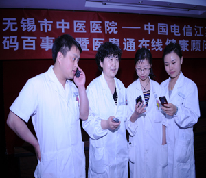 5月25日,江蘇省無錫市中醫(yī)醫(yī)院18位專家級醫(yī)師接受了中國電信江蘇公司的聘請,成為無錫首批電話在線的健康顧問。全省電信用戶只要撥打號碼百事通118114,即可得到在線醫(yī)療、健康專業(yè)指導。118114健康平臺還能為出院病人提供康復指導、動態(tài)跟蹤、復診提醒等健康管理服務(wù)。通過這一形式,能盡快實現(xiàn)一個醫(yī)前、醫(yī)中、醫(yī)后服務(wù)鏈。圖為無錫市中醫(yī)醫(yī)院的健康顧問們在為患者集體電話會診。