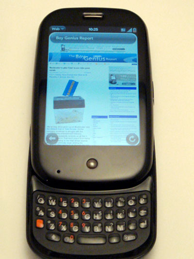 Pre采用了基于Webkit核心的瀏覽器,速度挺快。在Sprint的EV-DO網(wǎng)絡(luò)下,大部分網(wǎng)頁(yè)都在15-20秒打開(kāi)了,但頁(yè)面的縮放并沒(méi)有提供消除鋸齒效果。這臺(tái)樣機(jī)的應(yīng)用目錄是空的,所以我們只試著打開(kāi)Google