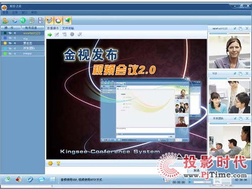 金視視頻會議系統(tǒng)(Kingsee Conference)是一款視頻會議+即時通訊(IM)的軟件,提供給用戶的是一個全面的、通用的多媒體通訊平臺,用戶可以利用普通的PC機(jī)、標(biāo)準(zhǔn)的視頻采集設(shè)備、耳機(jī)和麥克風(fēng),實(shí)現(xiàn)基于Internet的虛擬會議,金視視頻會議(Kingsee