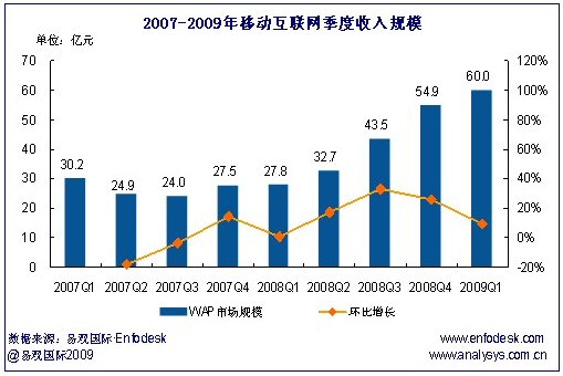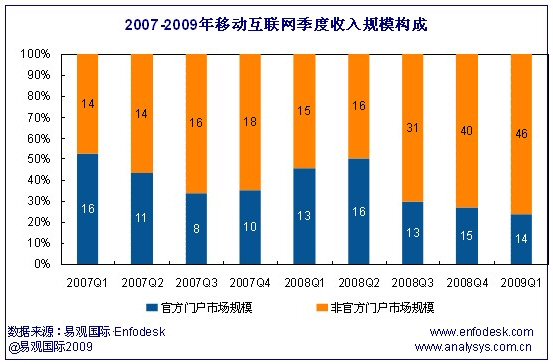 2009首季中國(guó)移動(dòng)互聯(lián)網(wǎng)收入達(dá)60億 運(yùn)營(yíng)商官方門(mén)戶有望快速增長(zhǎng)