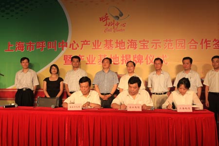 在今天的揭牌儀式現(xiàn)場,中國電信上海分公司、中國聯(lián)通上海分公司等分別與基地海寶示范園簽署了戰(zhàn)略合作協(xié)議,運營商將作為基地海寶示范園的戰(zhàn)略合作伙伴,支持并參與海寶示范園2000個呼叫座席的建設、運營和招商。