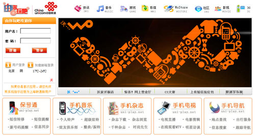 該網(wǎng)站分為資訊、音樂(lè)、游戲、彩信、WoStore、社區(qū)、影視、3G等幾類。其中,進(jìn)入WoStore類別還有通信類、信息類、娛樂(lè)類、商務(wù)類、音樂(lè)類的細(xì)分,主要提供聯(lián)通目前已有的相關(guān)增值業(yè)務(wù)。
