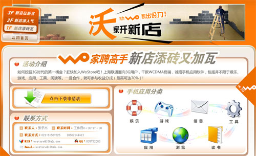 上海聯(lián)通在該網(wǎng)站特別設(shè)定“我家開(kāi)新店”版塊,為新店征名,同時(shí)尋求軟件開(kāi)發(fā)伙伴,并稱包括不限于娛樂(lè)、游戲、應(yīng)用、工具、閱讀等類別,一旦合作就可參與收益分成,最高可達(dá)70%。