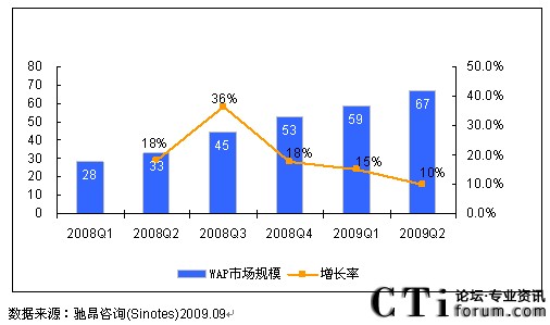 2009年第二季度中國WAP市場規(guī)模達67億元