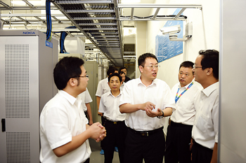 河南洛陽市12580家庭服務(wù)呼叫中心經(jīng)過一段時間的試運行,目前已有200多家家庭服務(wù)業(yè)公司加入該呼叫中心,實現(xiàn)了保姆、月嫂、保潔、開鎖、家教、婚慶、送鮮花、快遞、送餐和鐘點工等十幾項服務(wù),并將逐步擴大到50多項服務(wù)。圖為洛陽市副市長高頌革(右三)在洛陽移動公司視察指導工作。人民郵電報
