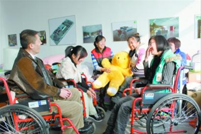 劉淼轉(zhuǎn)動(dòng)著輪椅在無障礙辦公區(qū)自如地穿行,記者隨著她參觀了就業(yè)基地。 “這份工作對于我們這些殘疾人來說,就像椅子上的陽光;我們不但心中充滿陽光,還要把我們心中的陽光傳遞給客戶,給他們以溫暖的感受。”說這些話時(shí),劉淼一直微笑著。