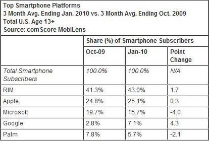 comScore報告顯示智能機RIM市占額達43%