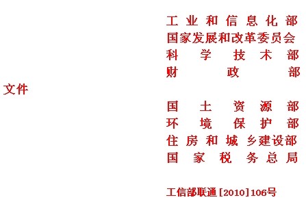 各省、自治區(qū)、直轄市、計(jì)劃單列市及新疆生產(chǎn)建設(shè)兵團(tuán)工業(yè)和信息化主管部門(mén)、通信管理局、發(fā)展改革委、科技廳(委、局)、財(cái)政廳(局)、國(guó)土資源廳(局)、環(huán)保廳(局)、建設(shè)廳(局)、國(guó)稅局、地稅局,中國(guó)電信集團(tuán)公司、中國(guó)移動(dòng)通信集團(tuán)公司、中國(guó)聯(lián)合網(wǎng)絡(luò)通信集團(tuán)有限公司: