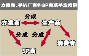 中國移動2007年1月出臺的《移動夢網(wǎng)SP合作管理辦法》規(guī)定,禁止SP和終端廠家直接進行終端內(nèi)置業(yè)務的合作。但是,大部分國產(chǎn)手機生產(chǎn)環(huán)節(jié)當中,都有一個重要的角色,那就是手機方案商。方案商主要負責提供整套手機設計方案,包括研發(fā)手機主板、設計操作系統(tǒng),他們把帶有操作系統(tǒng)的主板賣給手機生產(chǎn)商,生產(chǎn)商再采購外殼、液晶屏等部件組裝成成品手機。