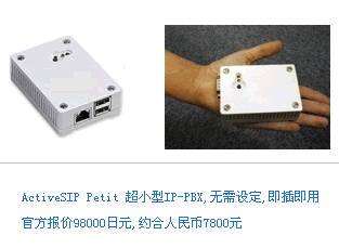 日本C-Borne公司發(fā)布了世界上最小的IP-PBX產(chǎn)品ActiveSIP Petit,采用Asterisk(米國(guó)Digium,Inc.開発),具備昂貴的專有PBX所有功能。這款比手掌還要小的IP-PBX設(shè)備適合小型辦公室和商店使用,可以通過(guò)網(wǎng)絡(luò)更新配置和設(shè)置,無(wú)需專業(yè)IP人士也可以搭建IP-PBX環(huán)境。利用楽天株式會(huì)社的Fusion通訊服務(wù),將大大降低成本電話費(fèi)和電信設(shè)備投資。51Asterisk