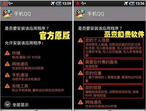 此外,吸費(fèi)應(yīng)用如果內(nèi)置到修改過的刷機(jī)ROM中,這些應(yīng)用直接出現(xiàn)在手機(jī)中,用戶也看不到“功能調(diào)用提示”;部分電腦端在安裝Android應(yīng)用的程序時(shí)也不出現(xiàn)功能調(diào)用提示。
