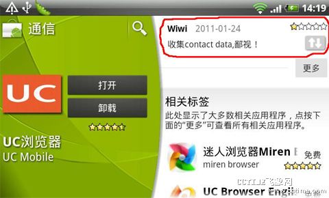 目前,很多手機(jī)社交應(yīng)用中加入了對用戶關(guān)系的抓取,這些應(yīng)用在用戶需要尋求社交關(guān)系時(shí),將讀取用戶通訊錄中的信息,并進(jìn)行自動匹配。其中包括手機(jī)廠商HTC的HTCSENSE,UCWEB中的UC樂園,以及最近火熱的kik類應(yīng)用,如KikMessenger,米聊、微信等。多數(shù)用戶表示對于此種抓取通訊錄的行為表示疑慮。