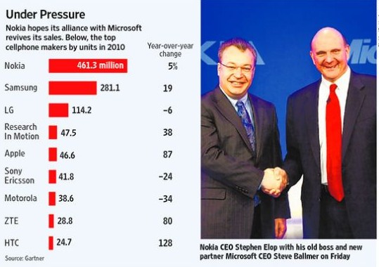 8250,N73,E71 ……曾幾何時(shí),諾基亞幾乎就是手機(jī)的代名詞。直到2008年第二季度,其全球市場份額高達(dá)40%,但此后便開始下滑,2010年第四季度其市場份額跌至31%。