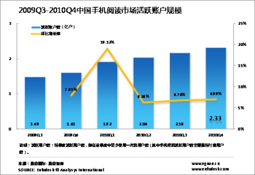 2010年第4季度中國(guó)手機(jī)閱讀用戶達(dá)2.33億