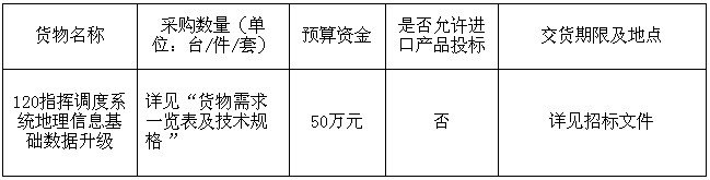 120指揮調度系統(tǒng)地理信息基礎數(shù)據(jù)升級采購項目招標公告