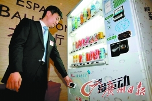 昨日,深圳本土研發(fā)的手機(jī)支付自動售貨機(jī)亮相,市民直接拿手機(jī)在自動售貨機(jī)上一刷,就能買飲料和食品。該系統(tǒng)支付主要依靠全球首款智能SD手機(jī)存儲支付卡,市民只需將此卡插入手機(jī),便能輕松實現(xiàn)手機(jī)支付。有關(guān)負(fù)責(zé)人表示,或?qū)研乱淮詣邮圬洐C(jī)投入大運村供運動員使用。廣州日報