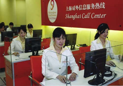 東方網5月1日消息:據(jù)《勞動報》報道,“Hello。ㄓ⒄Z:你好)”、“GutenTag(德語:你好)!”、“Bonjour(法語:你好)!”……這里就像個小小的聯(lián)合國,可以聽到15種語言;這里又像“女兒國”,接聽電話的都是80后的姑娘;這里就是上海對外信息服務熱線962288,365天、24小時接聽外籍人士的問詢電話。東方網