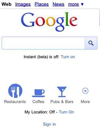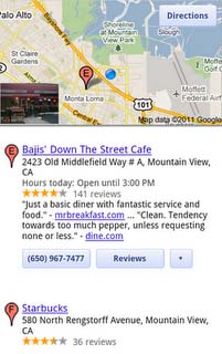 谷歌更新了移動搜索用戶界面。用戶移動設(shè)備屏幕的下方增添了諸如餐館、咖啡店、酒吧等圖標(biāo),并增添了一個(gè)“更多”的圖標(biāo)。如果用戶點(diǎn)擊這些圖標(biāo),可以查詢用戶所在地的各種商店的信息。而且這些商店的營業(yè)場所還將會在地圖上顯示出來。