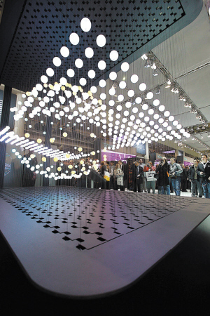 圖:漢諾威信息通信技術(shù)博覽會向觀眾展示“云計算”模型