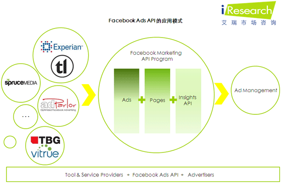 iResearch艾瑞咨詢(xún)整理Insidefacebook最新行業(yè)動(dòng)態(tài)時(shí)發(fā)現(xiàn),F(xiàn)acebook于2011年8月1日正式宣布開(kāi)放廣告接口(Ads API)應(yīng)用服務(wù),通過(guò)在該接口上投放第三方的高效廣告管理工具,廣告主甚至可以保證數(shù)百萬(wàn)的復(fù)雜媒體營(yíng)銷(xiāo)計(jì)劃正常運(yùn)營(yíng)并實(shí)現(xiàn)廣告管理的高效優(yōu)化。到目前為止,F(xiàn)acebook只為少數(shù)有限的第三方廣告管理工具供應(yīng)商提供了準(zhǔn)入接口,包括Techlightenment(近日被Experian收購(gòu))、TBG Digital(與Vitrue達(dá)成協(xié)作)、Spruce Media、AdParlor等。此外,F(xiàn)acebook也建立了廣告接口營(yíng)銷(xiāo)項(xiàng)目計(jì)劃,通過(guò)收取廣告、頁(yè)面、廣告接口洞察等相關(guān)費(fèi)用來(lái)實(shí)現(xiàn)盈利。隨著更多的第三方工具與服務(wù)供應(yīng)商進(jìn)入Ads API市場(chǎng),越來(lái)越多的當(dāng)?shù)匦⌒蛷V告主也有望享受低成本的廣告優(yōu)化管理服務(wù)。艾瑞咨詢(xún)