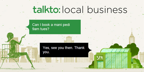 這一切是怎樣實(shí)現(xiàn)的呢?TalkTo通過(guò)短信與商家溝通。用戶(hù)可以通過(guò)web應(yīng)用在TalkTo目錄中搜索需要的服務(wù),輸入商家的詳細(xì)地址或者大概位置,TalkTo就可以確保商家看到用戶(hù)的短信。TalkTo用戶(hù)可以向商家提出問(wèn)題和意見(jiàn),或直接預(yù)定服務(wù)。“這一切就像和朋友發(fā)短信一樣簡(jiǎn)單!