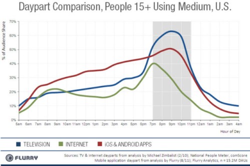 移動分析公司Flurry的一項(xiàng)最新研究表明,和電視節(jié)目有黃金收視時段一樣,移動應(yīng)用也有黃金使用時段,晚上7點(diǎn)左右是用戶使用移動應(yīng)用的頂峰期。36氪