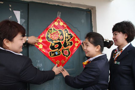 “阿姨,春節(jié)快到了,我們來看看您,前兩天已經(jīng)幫您把電充上了,這次給您帶了個(gè)手電,用著它以后到地下室可以照個(gè)亮!标(duì)長阿依古麗向丁阿姨說明來意,還跟丁阿姨試了試,手電是充電式的,不用換電池,丁阿姨挺高興的。臨走時(shí),阿依古麗還在她家門上貼了個(gè)大紅的“!弊郑8@先思倚履昕鞓。