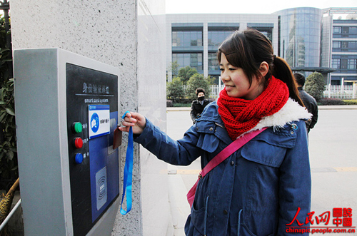 青青進(jìn)大門,刷卡報(bào)到。這張卡不僅可以用于刷門禁,還可以用來支付伙食費(fèi)。