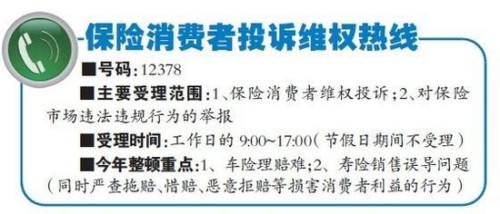 保監(jiān)部門表示,12378保險消費者投訴維權(quán)熱線開通后,對消費者反映的問題推諉扯皮、敷衍塞責、不認真解決并造成嚴重后果的,要追究有關(guān)人員的責任。對消費者反映比較突出的問題,要加強協(xié)調(diào),特事特辦、急事急辦,盡最大努力為消費者排憂解難。