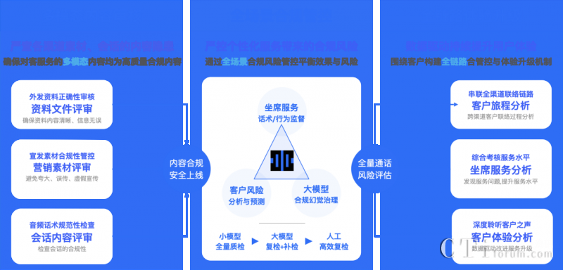 依托多項AI能力融合應用,升級后的【多模態(tài)合規(guī)分析平臺】能處理對話數(shù)據(jù)、圖片、音頻和視頻等各種格式的信息,同時采用大小模型組合式AI合規(guī)檢查機制,對各個渠道的客戶互動數(shù)據(jù)進行聚合分析,實現(xiàn)大模型構成坐席和客戶間全場景多模態(tài)數(shù)據(jù)檢測與分析,以及客戶體驗升級。