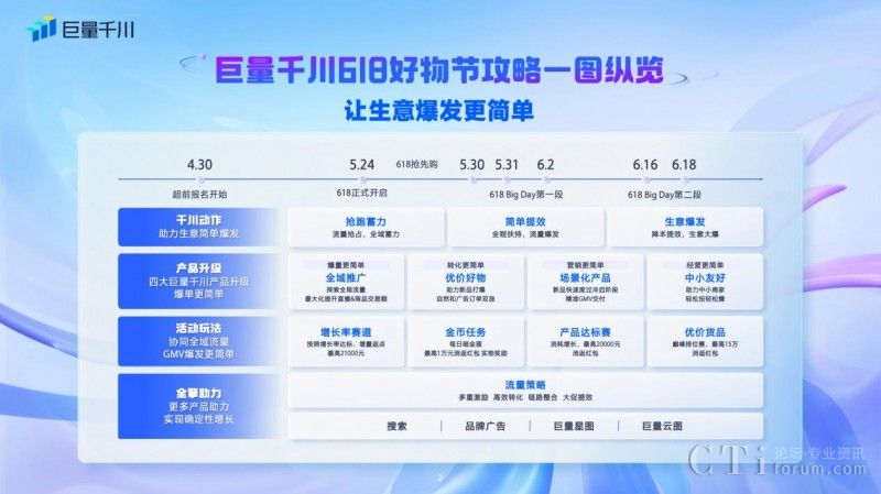 在此次巨量千川618好物節(jié)中,搜索廣告、巨量星圖、品牌廣告、巨量云圖,作為抖音生態(tài)的重要組成部分,也會(huì)為商家提供支持。