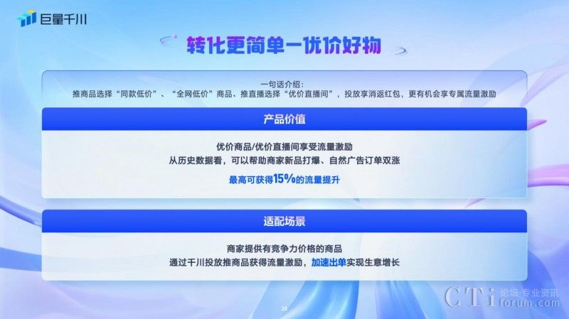 提升用戶的購買體驗(yàn)也是商家的關(guān)注點(diǎn),隨著消費(fèi)者購物習(xí)慣的不斷變化,94%的消費(fèi)者在購物時(shí)有比價(jià)的習(xí)慣,因此商家在激勵(lì)的競爭下提供有競爭力的商品疊加穩(wěn)定的價(jià)格體系,是實(shí)現(xiàn)有效經(jīng)營和提升用戶體驗(yàn)的關(guān)鍵。為更好的滿足商家需求,讓好產(chǎn)品被更多的人看到,具有價(jià)格力的「優(yōu)價(jià)好物」,會(huì)為商家增長帶來新動(dòng)力,讓轉(zhuǎn)化變得更簡單。