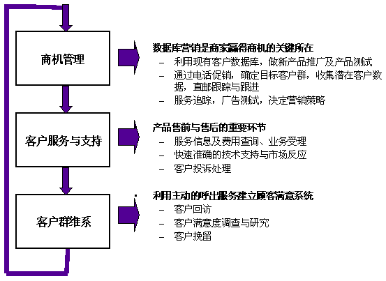 。。呼叫中心能夠幫助企業(yè)直銷,挖掘和驗(yàn)證商機(jī),同時(shí)通過分銷商管理,傳遞商機(jī),提供最快的支持,同時(shí)在公關(guān)活動(dòng)中,呼叫中心可以用于招募參加者,或通過電話呼入支持客戶的活動(dòng),客戶歷史記錄的建立,以及客戶資料數(shù)據(jù)庫的完備,將幫助企業(yè)開拓?cái)?shù)據(jù)營銷市場,通過呼出和呼入方式,建立用戶數(shù)據(jù)庫,挖掘潛在商機(jī)。 可見,利用呼叫中心的利潤循環(huán)是執(zhí)行客戶關(guān)系管理的核心基礎(chǔ)。如下圖所示: