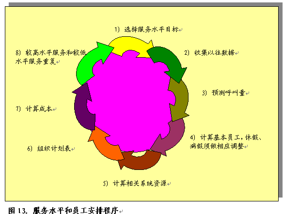 制訂員工工作時間表是一個重要的管理任務(wù),每天通過三次替換有效配置員工,從而提供一年365天,24小時x7天的服務(wù)?衫肁CD報告進行這一工作,確定以往呼叫量、放棄率和高峰期,預(yù)計下個小時、下一天、下個月或下一年的呼叫量。管理層按照規(guī)定程序確定員工需求量。根據(jù)以往呼叫量確定員工需求量。