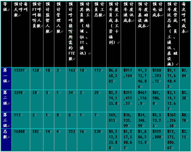 每天呼叫數(shù)每天呼叫總數(shù) = 20,00080% 代表回復呼叫數(shù) = 16,00020% IVR回復呼叫數(shù) = 4,000 |