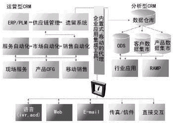 CRM是一種以客戶為中心的業(yè)務(wù)模式,是由多種技術(shù)手段支持的、通過以客戶為中心達(dá)到增強(qiáng)企業(yè)競爭力的商業(yè)策略,這一點(diǎn)已在市場上取得了共識。這種認(rèn)識對許多企業(yè)來說,或許仍覺得有些抽象。CRM要達(dá)到的目標(biāo),就是在適當(dāng)?shù)臅r間通過適當(dāng)?shù)那澜o適當(dāng)?shù)目蛻籼峁┻m當(dāng)?shù)漠a(chǎn)品和服務(wù),這不是憑一種技術(shù)手段就能夠?qū)崿F(xiàn)的。美國調(diào)研機(jī)構(gòu)Meta Group把CRM分為三類(如圖1所示):一是與企業(yè)業(yè)務(wù)運(yùn)營緊密相關(guān)的運(yùn)營型CRM。運(yùn)營型CRM即所謂的前端辦公室應(yīng)用,包括銷售自動化、市場自動化、服務(wù)自動化等應(yīng)用,以及前端辦公室和后端辦公室的無縫集成。二是以數(shù)據(jù)倉庫為基礎(chǔ)、實(shí)現(xiàn)統(tǒng)一客戶視角的分析型CRM。分析型CRM與數(shù)據(jù)倉庫密切相關(guān),運(yùn)用數(shù)據(jù)挖掘、OLAP、交互查詢和報表等手段,了解客戶的終身價值、信用風(fēng)險和購買趨向等。三是基于多媒體聯(lián)系中心、建立在統(tǒng)一接入平臺上的協(xié)作型CRM。協(xié)作型CRM是為客戶交互服務(wù)和收集客戶信息提供的各種渠道及聯(lián)系的手段。