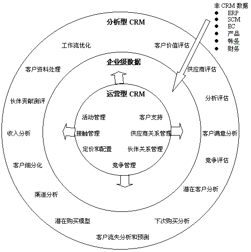 能提供上述問題和其他企業(yè)問題的客戶信息,就能夠?qū)蛻舴⻊铡N售技巧和隨后的促銷戰(zhàn)略作出關(guān)鍵決策。通過對“運營型”CRM數(shù)據(jù)與來自于全公司的信息進行集成,公司便能夠開始執(zhí)行分析型CRM;并且執(zhí)行后,可以作出真正的“以客戶為中心”的企業(yè)決策。