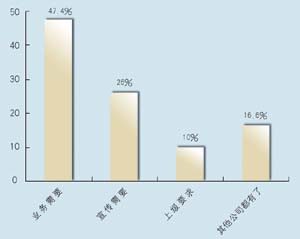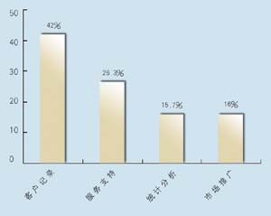 在問(wèn)到對(duì)CRM的熟悉程度方面,有12家表示熟悉,占到63.2%,另有7家表示不熟悉,說(shuō)明許多企業(yè)已經(jīng)對(duì)CRM有一定了解,不過(guò)也仍有相當(dāng)大的市場(chǎng)空間。其中有8家建立了CRM系統(tǒng),占到42%,計(jì)劃建立的有9家,占到47.4%,而有2家表示短期不會(huì)建立。從調(diào)查發(fā)現(xiàn),幾乎所有受訪者都接受和認(rèn)同CRM,盡管有一些企業(yè)還不熟悉,但在調(diào)查問(wèn)卷中對(duì)此表現(xiàn)出極大的興趣。在CRM的采購(gòu)動(dòng)機(jī)上,有9家表示是為了提高業(yè)務(wù),占到將近一半的比例(47.4%),而有5家表示出于企業(yè)宣傳,2家屬于上級(jí)主管部門(mén)要求,有3家表示是出于同行的示范。調(diào)查顯示,企業(yè)獲得CRM的信息來(lái)源很廣,最多的是通過(guò)報(bào)刊雜志的廣告,有6家,占31.6%,而上級(jí)推薦和供應(yīng)商推薦各有4家,各占21%,有兩家是集成商推薦,此外還有3家通過(guò)展會(huì)獲得相關(guān)信息。