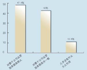 在問(wèn)到實(shí)施周期上,有9家表示希望在3個(gè)月內(nèi)完成,占到47.4%,有6家接受3~6個(gè)月的周期,超過(guò)6個(gè)月的周期已經(jīng)顯得太長(zhǎng)。在問(wèn)到CRM的實(shí)施效果上,有9家認(rèn)為對(duì)公司運(yùn)營(yíng)效率有很大提高,8家認(rèn)為作用一般,只有2家認(rèn)為沒(méi)有作用。表明基本上企業(yè)認(rèn)可CRM的作用。在問(wèn)到是否有專(zhuān)門(mén)人員負(fù)責(zé)CRM時(shí),有6家表示有專(zhuān)門(mén)部門(mén),有6家有專(zhuān)門(mén)人員,合計(jì)占62%,說(shuō)明企業(yè)非常重視CRM的應(yīng)用。