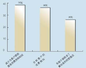 關(guān)于所應(yīng)用的CRM類(lèi)型,有5家是呼叫中心,5家是分析型,7家是運(yùn)營(yíng)型,2家是屬于大型企業(yè)CRM。其中13家擁有動(dòng)態(tài)客戶數(shù)據(jù)庫(kù),占到68.4%。這其中又有42%利用數(shù)據(jù)庫(kù)作客戶記錄,26.3%作為客戶支持使用,15.7%用作統(tǒng)計(jì)分析,另有16%作為市場(chǎng)推廣。保險(xiǎn)公司與客戶聯(lián)系的方式,從重要性來(lái)看依次為:面對(duì)面\電話\網(wǎng)絡(luò)\傳真,這說(shuō)明保險(xiǎn)公司對(duì)于與客戶進(jìn)行人性化交流的重視。在問(wèn)到CRM的主要作用時(shí),有5家表示使用CRM有助于保險(xiǎn)業(yè)了解自身的經(jīng)營(yíng)情況,幫助公司準(zhǔn)確地發(fā)現(xiàn)贏利客戶和具有贏利潛力的客戶,有7家認(rèn)為使用CRM有助于分析客戶的消費(fèi)傾向,有7家認(rèn)為使用CRM有助于優(yōu)化信息和資源管理。在問(wèn)到是否愿意為像CRM系統(tǒng)這樣的咨詢(xún)或服務(wù)付費(fèi)時(shí),有11家表示愿意,占到57.8%。