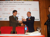 中國最佳CRM實施的授獎儀式已在2003年CRM論壇·中國上如期舉行,共有300余人參加了本次論壇(北京,上海和深圳會場)。